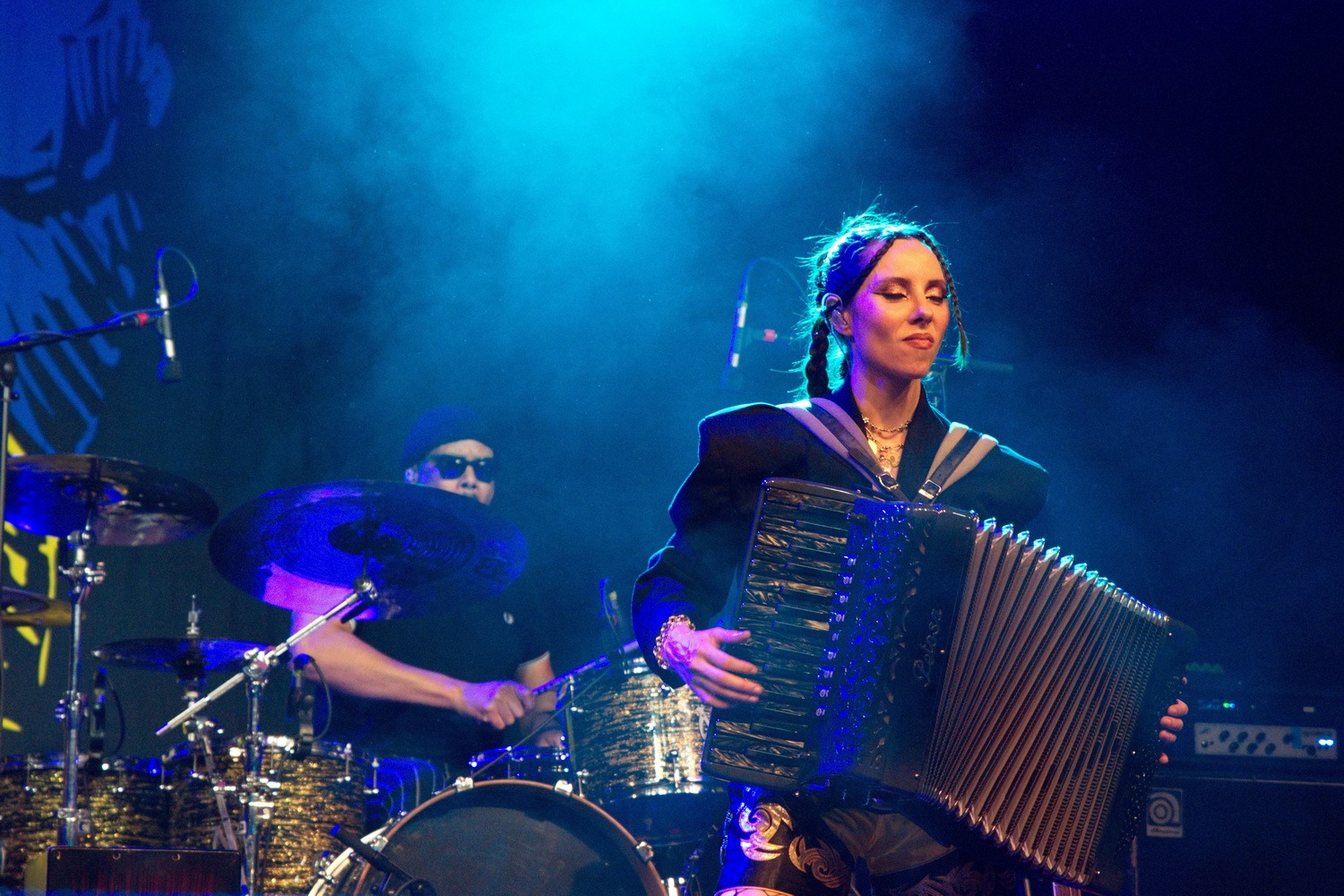 Після перерви настав час хедлайнера. Щойно розпочалося шоу, й не знати було, на кого дивитися в першу чергу – семеро музикантів на сцені створювали унікальне видовище, що зливалося в ідеальну єдність. Юджин Гуц – це особлива постать: його голос упізнаваний одразу, а його енергія неймовірно заразлива. Не можна не згадати й єдину жінку в гурті – Еріку з акордеоном. Вона зачаровувала не лише своєю зовнішністю, але й грою, яка передавала цілу палітру емоцій: від безтурботної радості до легкої запальності, завжди з гумором, без страху бути навіть трохи кумедною. Справжня сценічна постать.