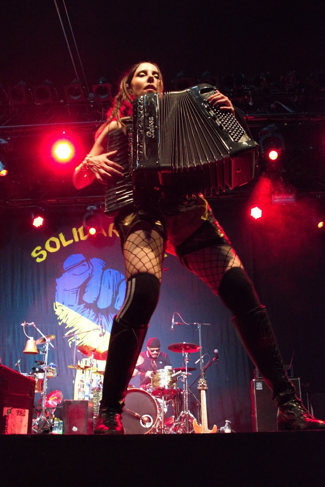 Після перерви настав час хедлайнера. Щойно розпочалося шоу, й не знати було, на кого дивитися в першу чергу – семеро музикантів на сцені створювали унікальне видовище, що зливалося в ідеальну єдність. Юджин Гуц – це особлива постать: його голос упізнаваний одразу, а його енергія неймовірно заразлива. Не можна не згадати й єдину жінку в гурті – Еріку з акордеоном. Вона зачаровувала не лише своєю зовнішністю, але й грою, яка передавала цілу палітру емоцій: від безтурботної радості до легкої запальності, завжди з гумором, без страху бути навіть трохи кумедною. Справжня сценічна постать.