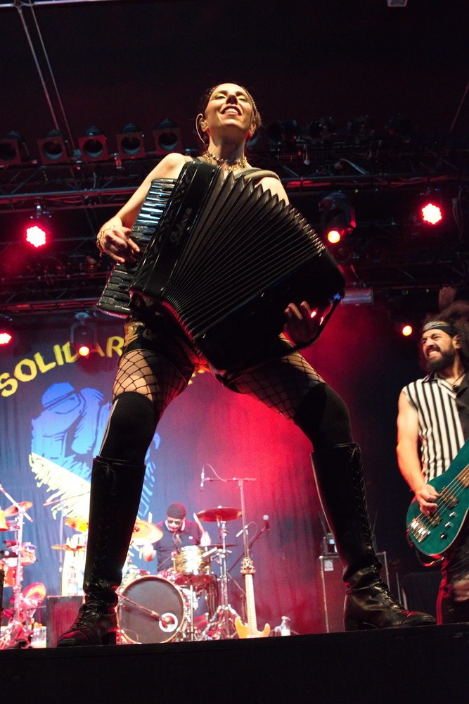 Після перерви настав час хедлайнера. Щойно розпочалося шоу, й не знати було, на кого дивитися в першу чергу – семеро музикантів на сцені створювали унікальне видовище, що зливалося в ідеальну єдність. Юджин Гуц – це особлива постать: його голос упізнаваний одразу, а його енергія неймовірно заразлива. Не можна не згадати й єдину жінку в гурті – Еріку з акордеоном. Вона зачаровувала не лише своєю зовнішністю, але й грою, яка передавала цілу палітру емоцій: від безтурботної радості до легкої запальності, завжди з гумором, без страху бути навіть трохи кумедною. Справжня сценічна постать.