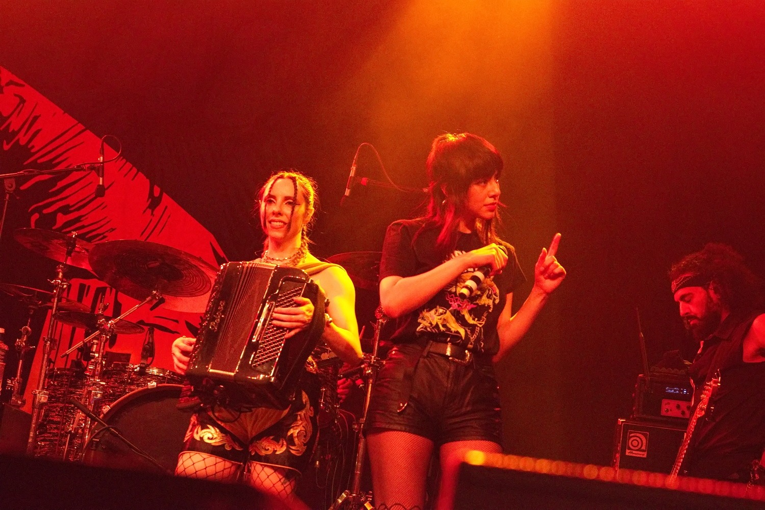 Після перерви настав час хедлайнера. Щойно розпочалося шоу, й не знати було, на кого дивитися в першу чергу – семеро музикантів на сцені створювали унікальне видовище, що зливалося в ідеальну єдність. Юджин Гуц – це особлива постать: його голос упізнаваний одразу, а його енергія неймовірно заразлива. Не можна не згадати й єдину жінку в гурті – Еріку з акордеоном. Вона зачаровувала не лише своєю зовнішністю, але й грою, яка передавала цілу палітру емоцій: від безтурботної радості до легкої запальності, завжди з гумором, без страху бути навіть трохи кумедною. Справжня сценічна постать.