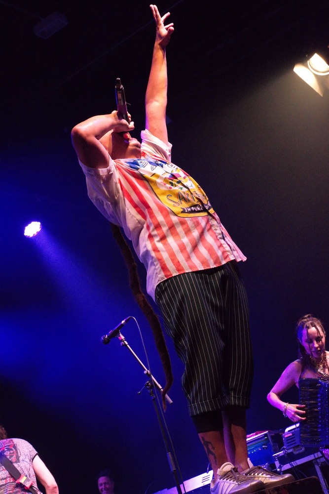 Після перерви настав час хедлайнера. Щойно розпочалося шоу, й не знати було, на кого дивитися в першу чергу – семеро музикантів на сцені створювали унікальне видовище, що зливалося в ідеальну єдність. Юджин Гуц – це особлива постать: його голос упізнаваний одразу, а його енергія неймовірно заразлива. Не можна не згадати й єдину жінку в гурті – Еріку з акордеоном. Вона зачаровувала не лише своєю зовнішністю, але й грою, яка передавала цілу палітру емоцій: від безтурботної радості до легкої запальності, завжди з гумором, без страху бути навіть трохи кумедною. Справжня сценічна постать.