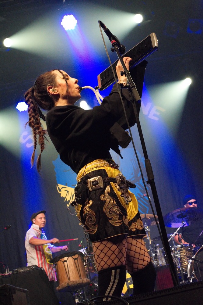Після перерви настав час хедлайнера. Щойно розпочалося шоу, й не знати було, на кого дивитися в першу чергу – семеро музикантів на сцені створювали унікальне видовище, що зливалося в ідеальну єдність. Юджин Гуц – це особлива постать: його голос упізнаваний одразу, а його енергія неймовірно заразлива. Не можна не згадати й єдину жінку в гурті – Еріку з акордеоном. Вона зачаровувала не лише своєю зовнішністю, але й грою, яка передавала цілу палітру емоцій: від безтурботної радості до легкої запальності, завжди з гумором, без страху бути навіть трохи кумедною. Справжня сценічна постать.
