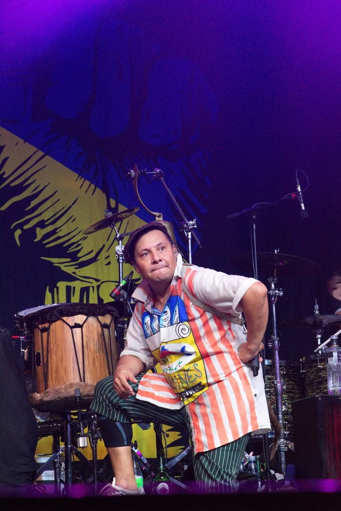 Після перерви настав час хедлайнера. Щойно розпочалося шоу, й не знати було, на кого дивитися в першу чергу – семеро музикантів на сцені створювали унікальне видовище, що зливалося в ідеальну єдність. Юджин Гуц – це особлива постать: його голос упізнаваний одразу, а його енергія неймовірно заразлива. Не можна не згадати й єдину жінку в гурті – Еріку з акордеоном. Вона зачаровувала не лише своєю зовнішністю, але й грою, яка передавала цілу палітру емоцій: від безтурботної радості до легкої запальності, завжди з гумором, без страху бути навіть трохи кумедною. Справжня сценічна постать.