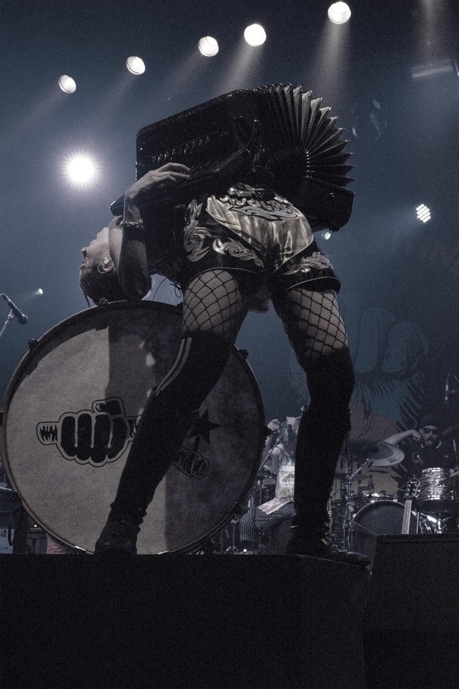 Після перерви настав час хедлайнера. Щойно розпочалося шоу, й не знати було, на кого дивитися в першу чергу – семеро музикантів на сцені створювали унікальне видовище, що зливалося в ідеальну єдність. Юджин Гуц – це особлива постать: його голос упізнаваний одразу, а його енергія неймовірно заразлива. Не можна не згадати й єдину жінку в гурті – Еріку з акордеоном. Вона зачаровувала не лише своєю зовнішністю, але й грою, яка передавала цілу палітру емоцій: від безтурботної радості до легкої запальності, завжди з гумором, без страху бути навіть трохи кумедною. Справжня сценічна постать.